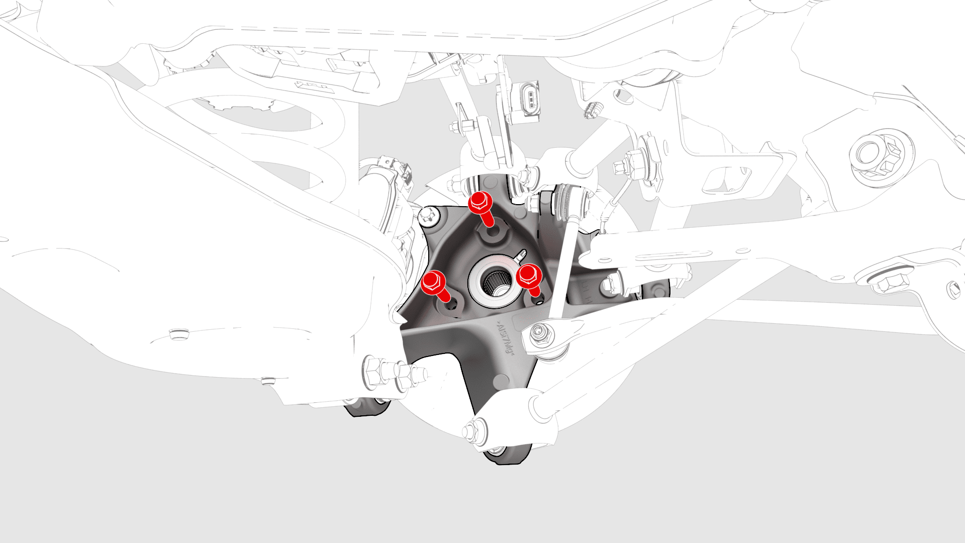 | Bolts that attach the LH rear hub and bearing to the LH rear knuckle |