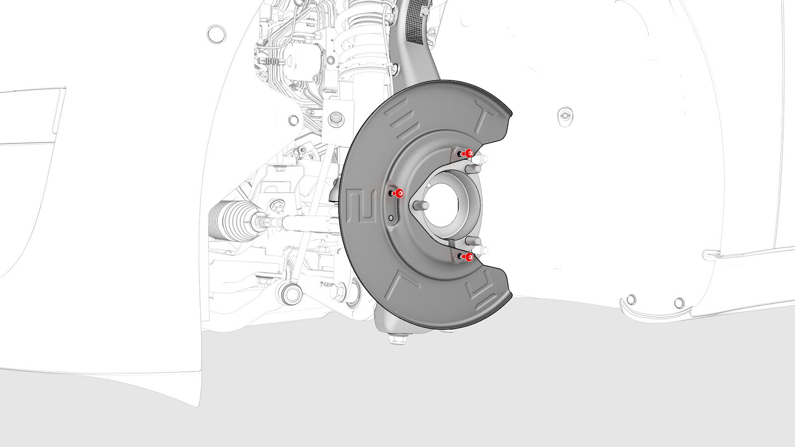 | LH front brake dust shield to the knuckle |