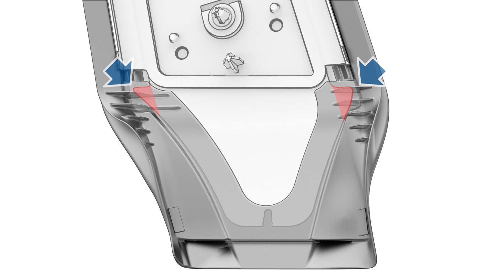 NoteMake sure the retaining tabs are tucked under the side seals.