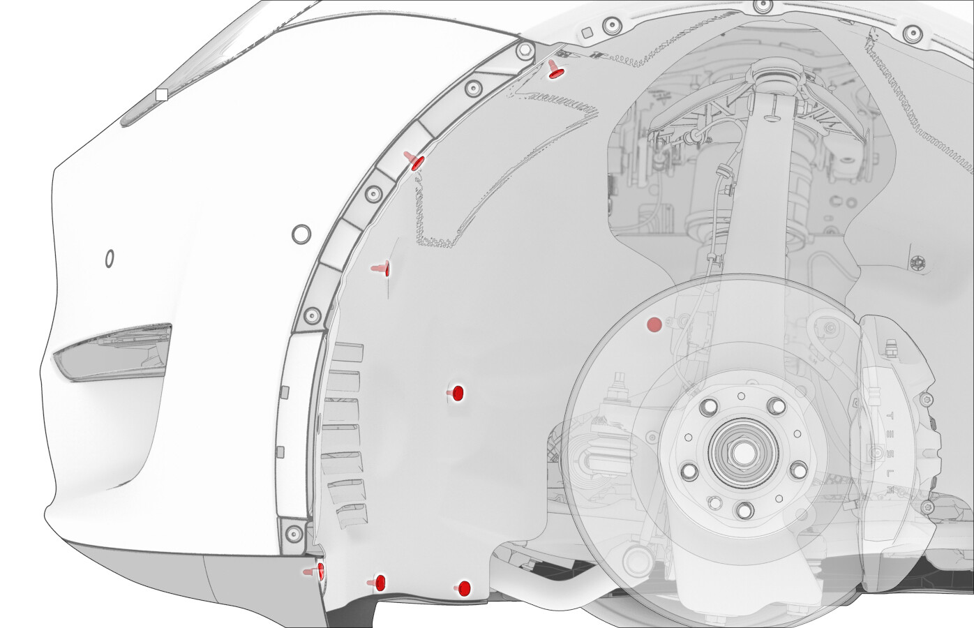 Install the clips (x8) that attach the front of the front wheel arch liner