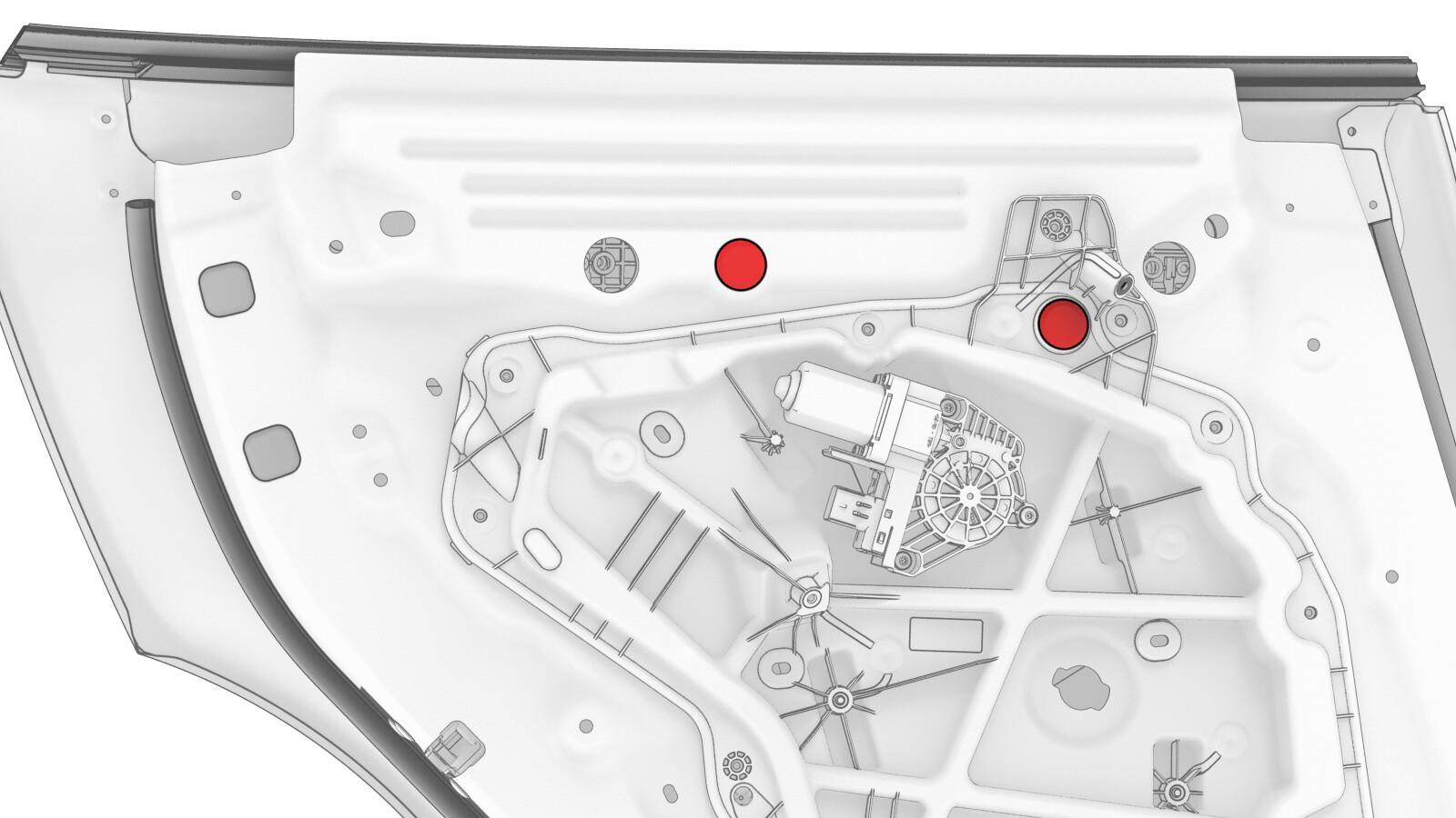 - Remove the rear LH door glass. See Glass - Door - LH - Rear (Remove and Replace).