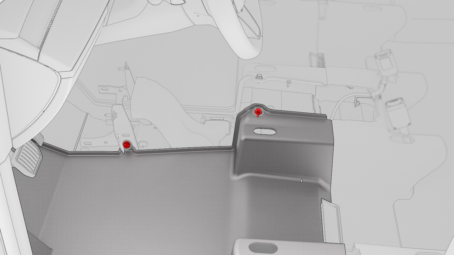 - Remove the driver seat. See Seat Assembly - 1st Row - LH (Remove and Replace).