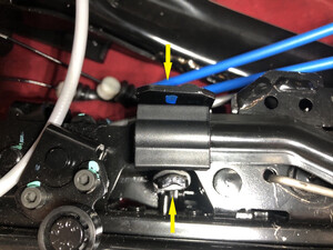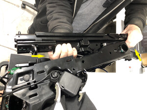 - Using the seat fold tool, connect the recliner actuator electrical connector into the recliner actuator, and then activate the switch to release the floor latches.