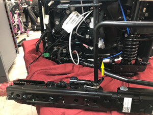 attach the RH 2nd row seat cushion harness to the seat podium.