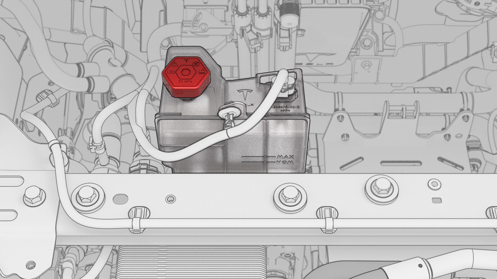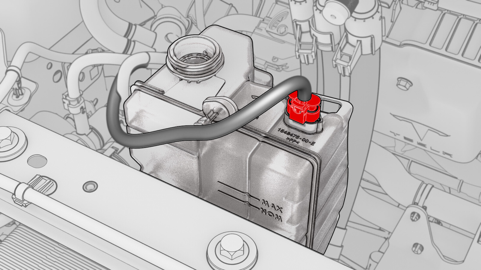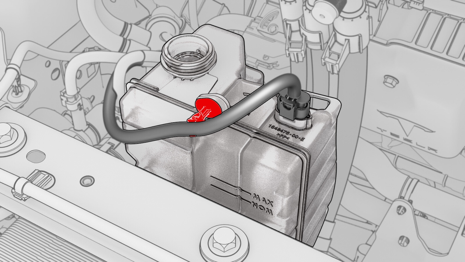 - Verify the o-ring at the bottom of the coolant bottle is properly seated, and then apply lubricant to the o-ring.
