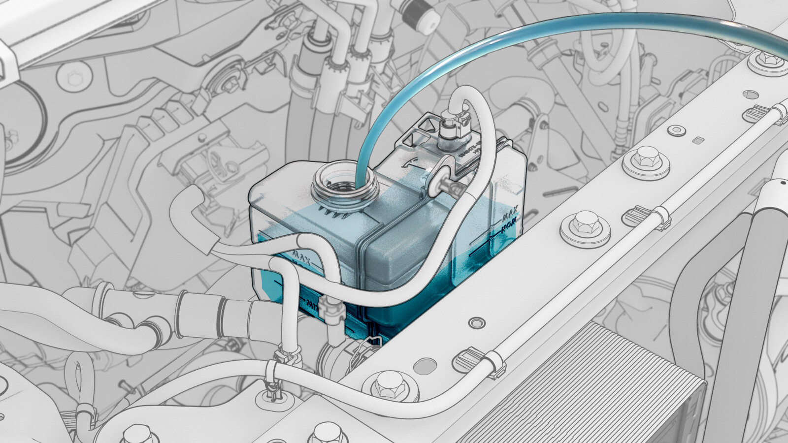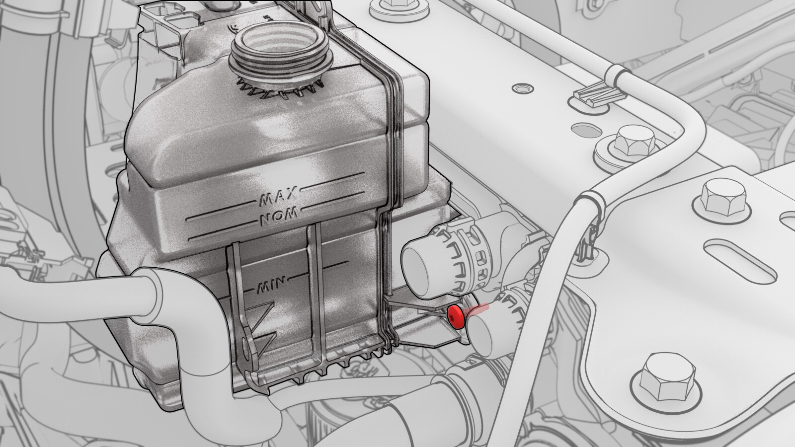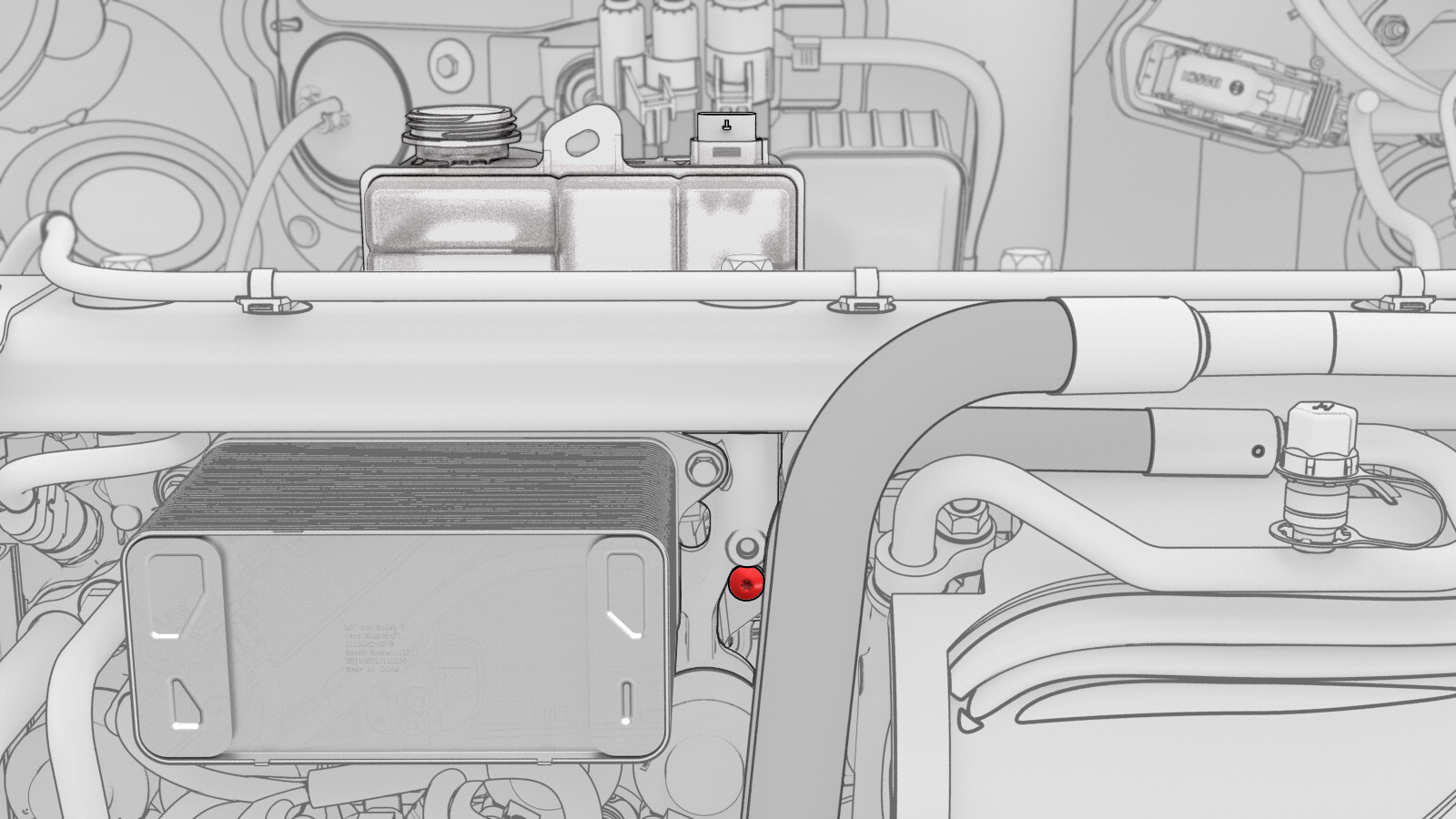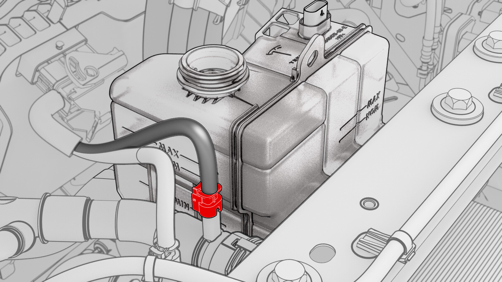 - Verify the o-ring at the bottom of the coolant bottle is properly seated, and then apply lubricant to the o-ring.