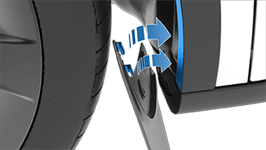 Maneuver the mud flap in place so that the tabs on the mud flap hook onto the backside of the front fender garnish. Make sure that the mud flap is aligned correctly with the holes in the front wheel arch liner and body of the vehicle.
