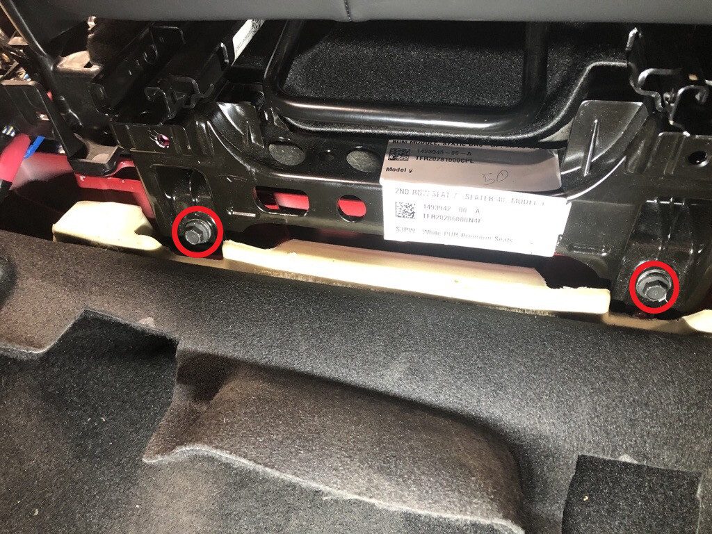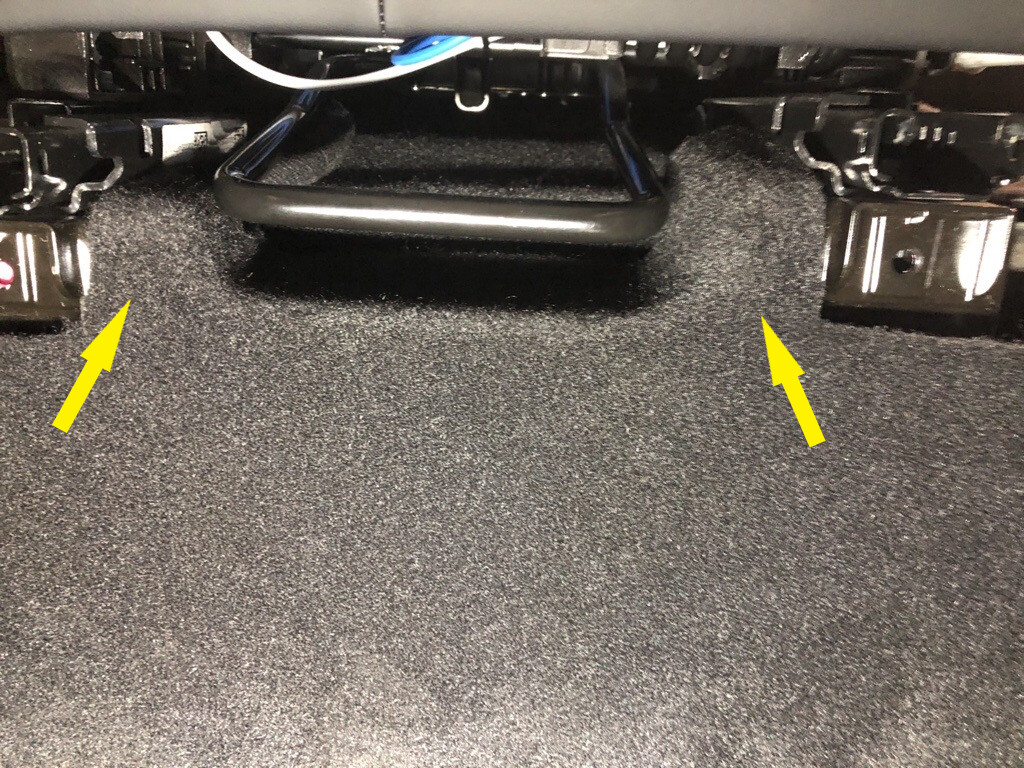 7. Tighten the new bolts that attach the RH 2nd row seat podium to the vehicle.