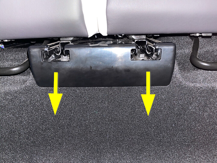 5. Release the clips that attach the 2nd row center track cover to the 2nd row center seat track, and then slide the cover forward to release it from the seat assembly.