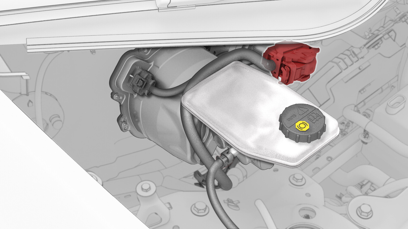 - Using a brake fluid syringe, remove the brake fluid from the reservoir.