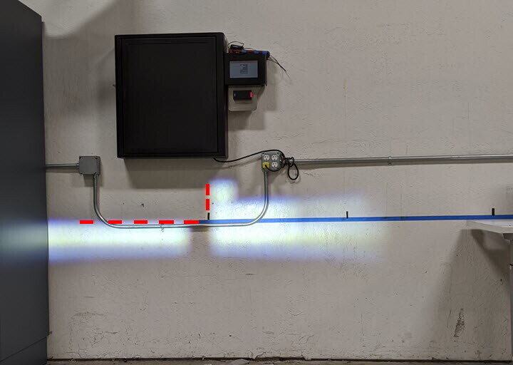 against the tape on the wall, project a laser beam onto the center point of