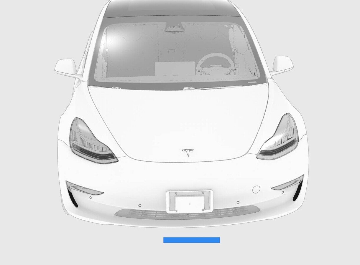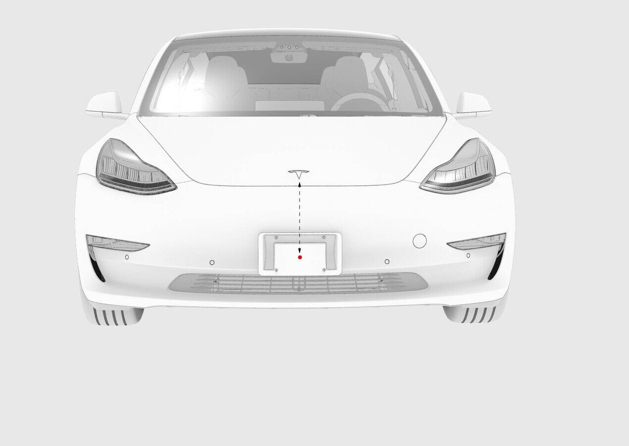 TIpAim the laser beam at the flat part of the front fascia cover, directly below the bottom tip of the Tesla "T" badge.
