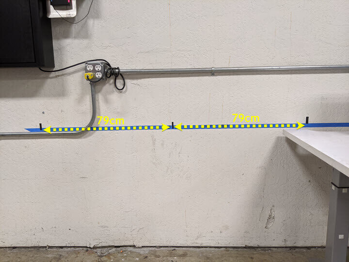 - Put a piece of tape on the wall 81 cm (31.9 in) from the ground.