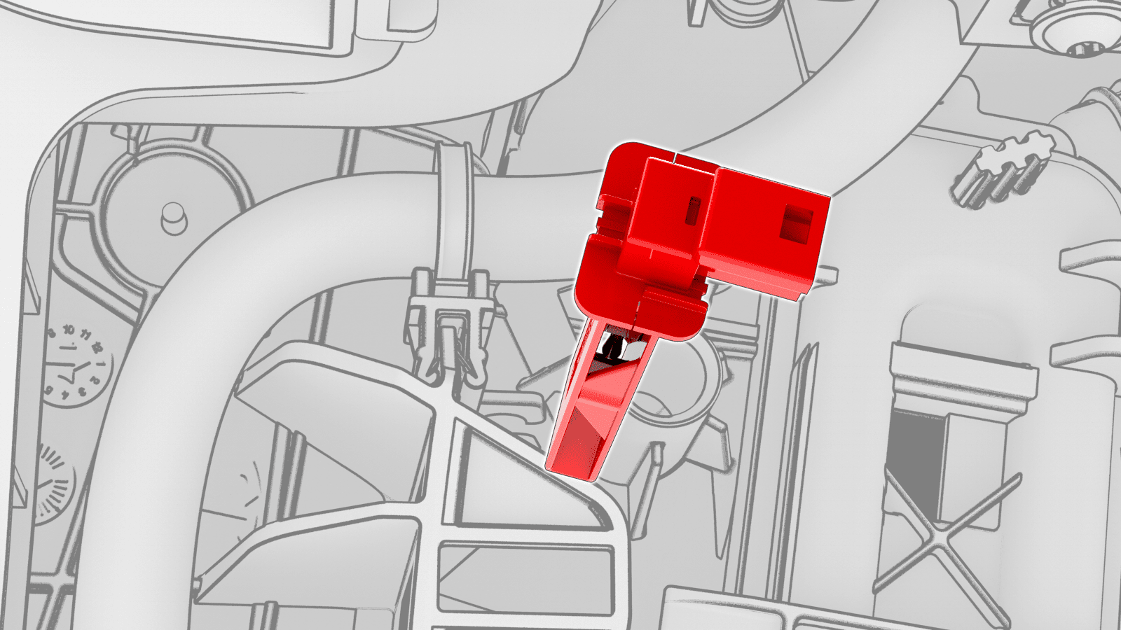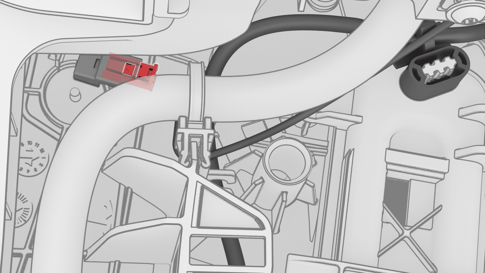 - Push the RH lower duct thermistor into the HVAC assembly until the retaining clips are fully secure.