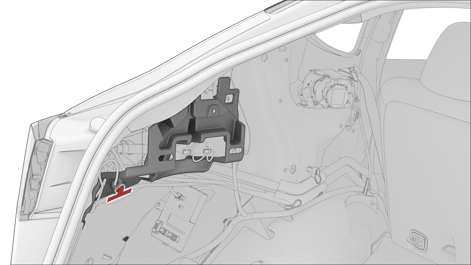 Install the harness clip on the LH C-Pillar bracket.