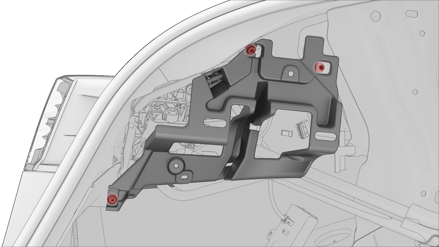 Release the clips (x3) that attach the LH C-Pillar bracket to the vehicle, and then carefully pull the bracket away from the vehicle.