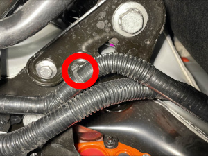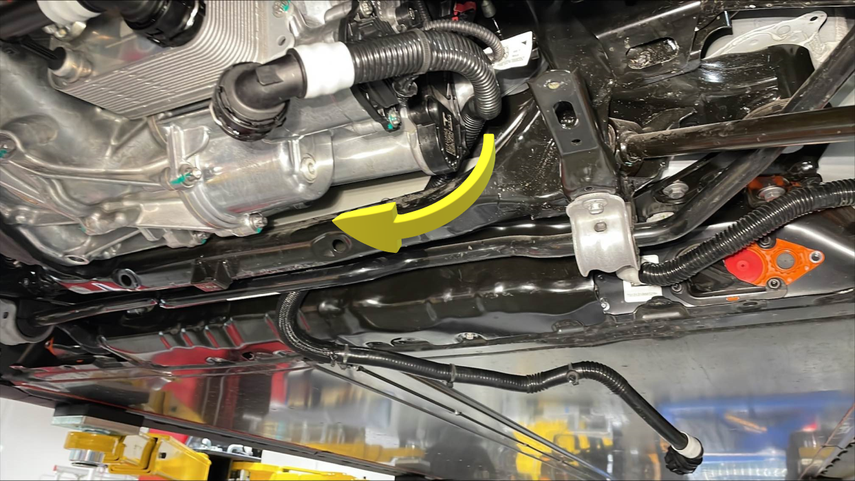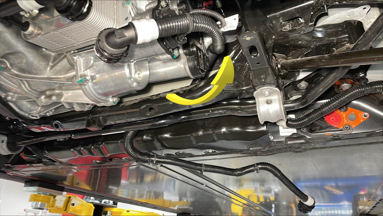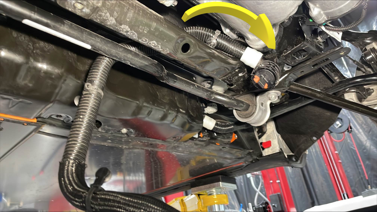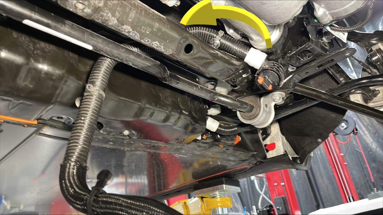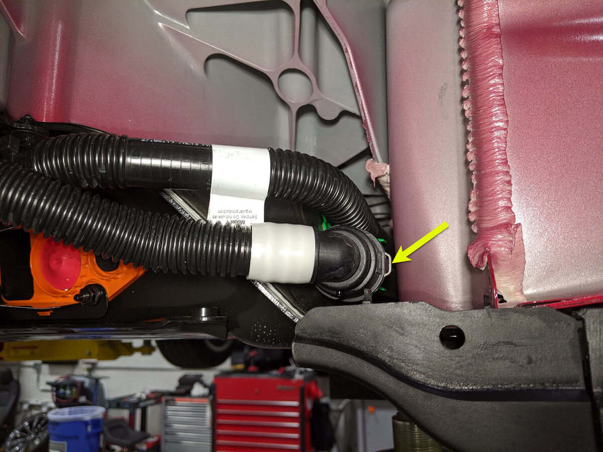 hose up and in between the rear subframe and the HV battery, and then move the hose in