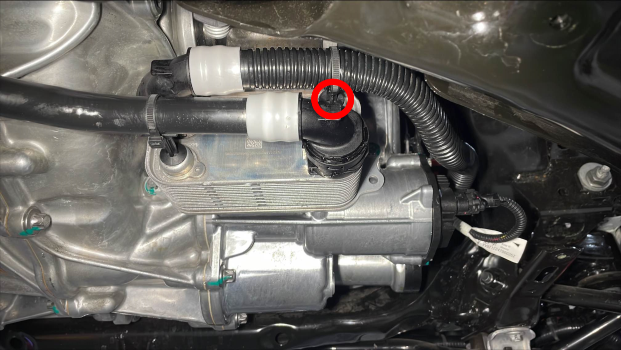 drive unit coolant outlet hose from the powertrain return hose, and then immediately