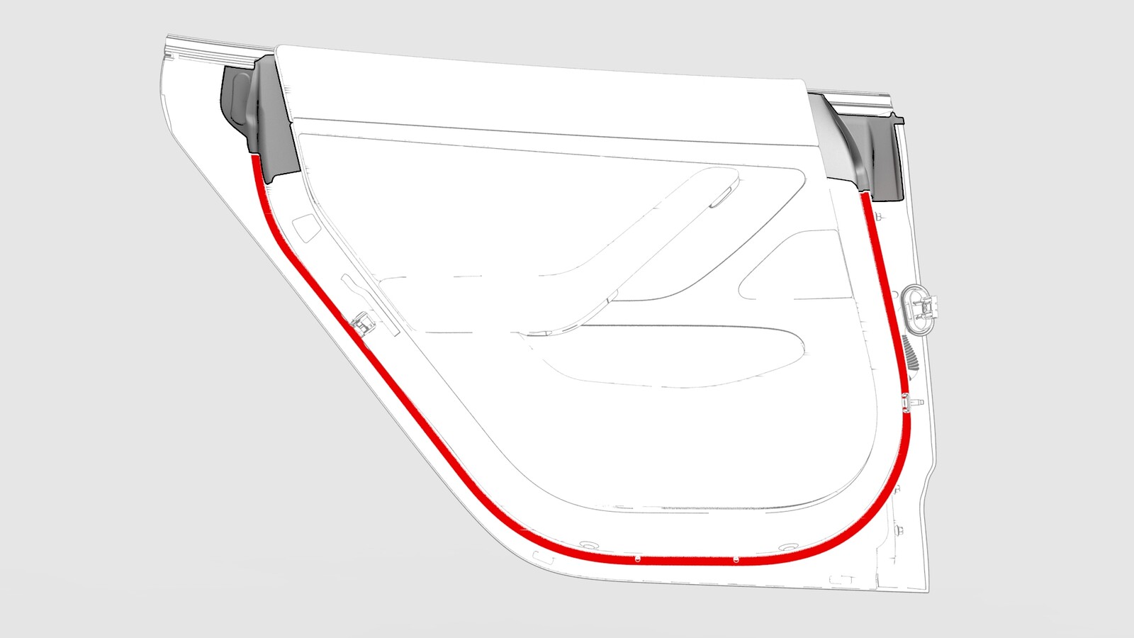 2. Release the LH rear glass run seal clips (x4) to fully access the LH rear door secondary seal.