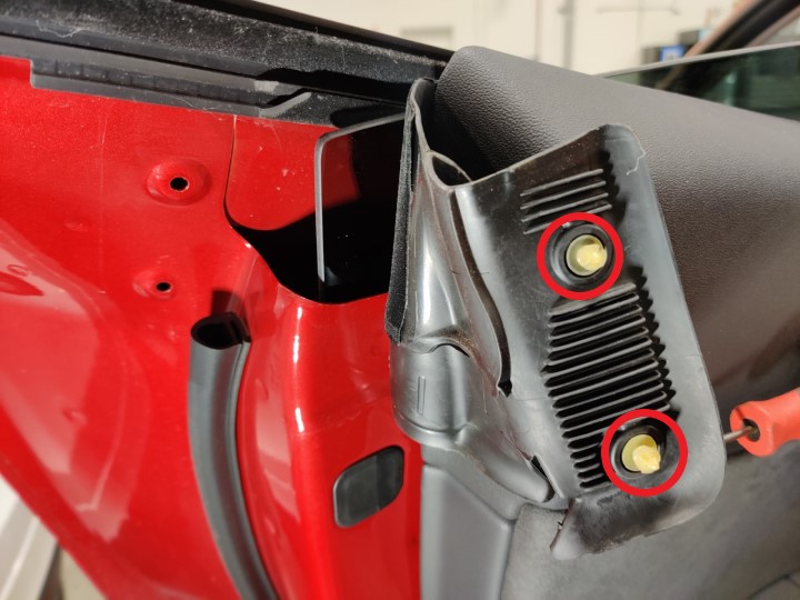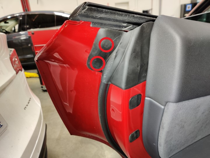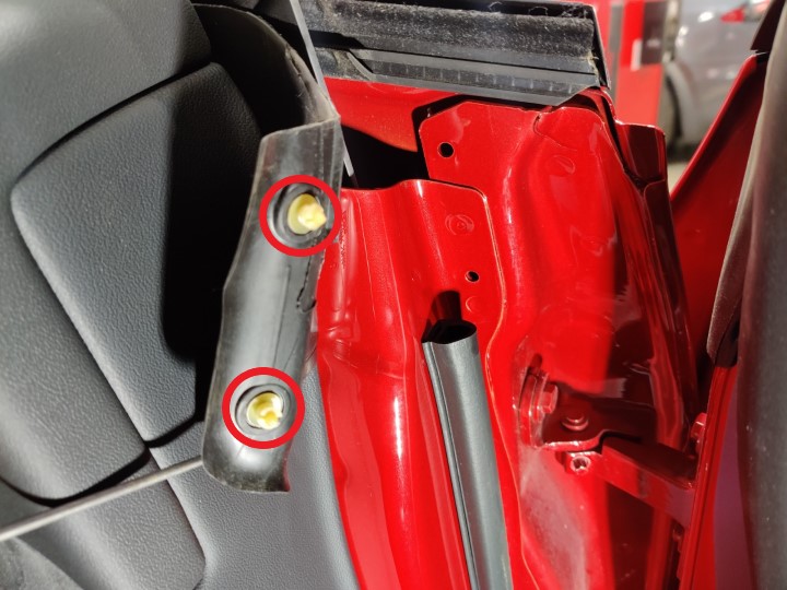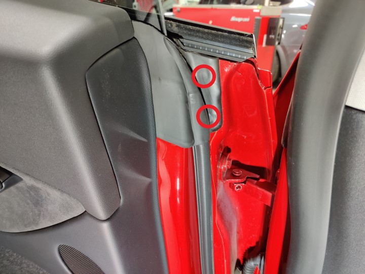 7. Install the LH rear glass run seal clips (x4) to fully access the LH rear door secondary seal.