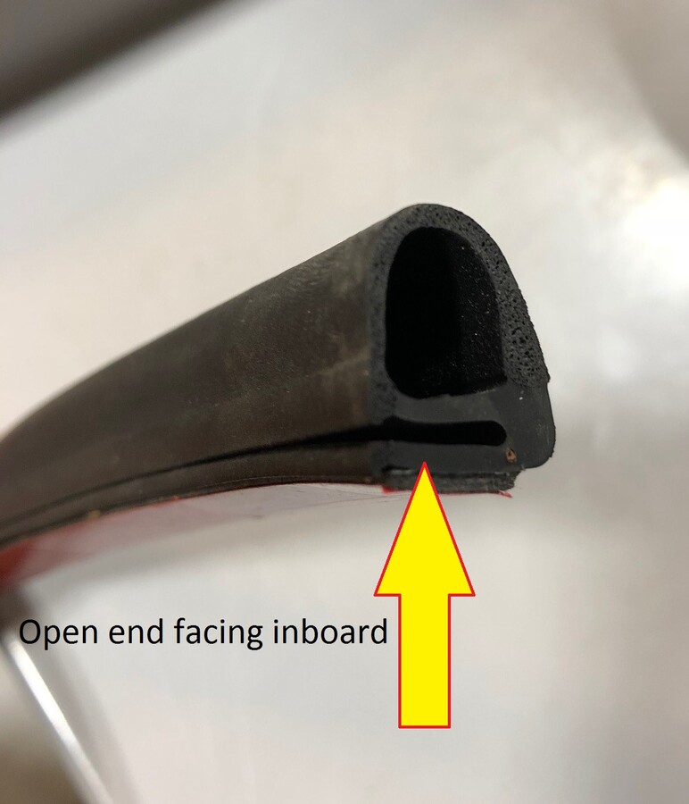 2. Peel a short section of seal backing and insert the end of the seal into the rear of the glass run seal.
