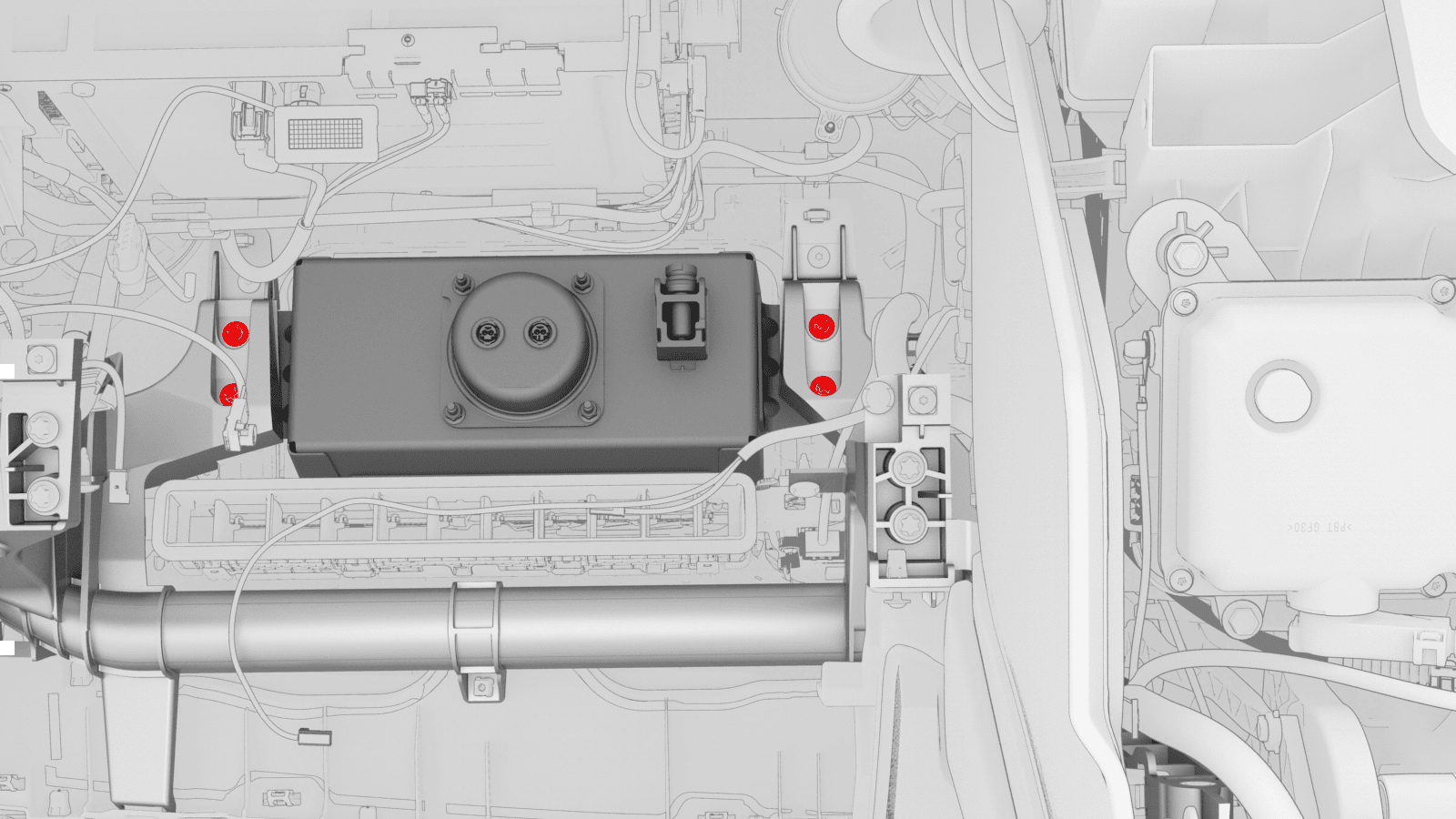 (x4) that attach the front passenger airbag to the cross car beam.