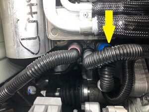 the front drive unit heat exchanger, and then fasten the spring clip.