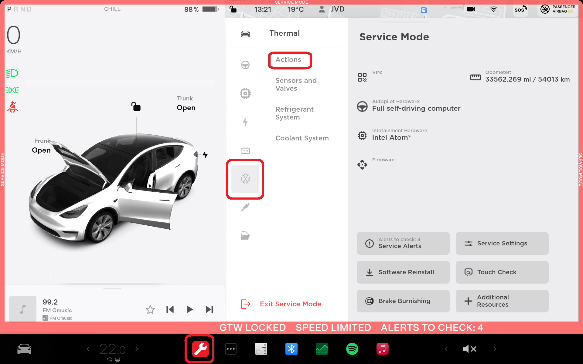 On the touchscreen, navigate to the Thermal Actions screen: touch