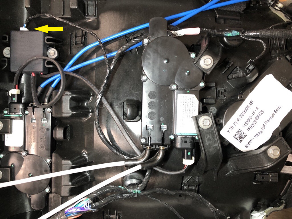 - Using the seat fold tool, connect the recliner actuator electrical connector into the recliner actuator, and then activate the switch to fold the RH 2nd row seat down.
