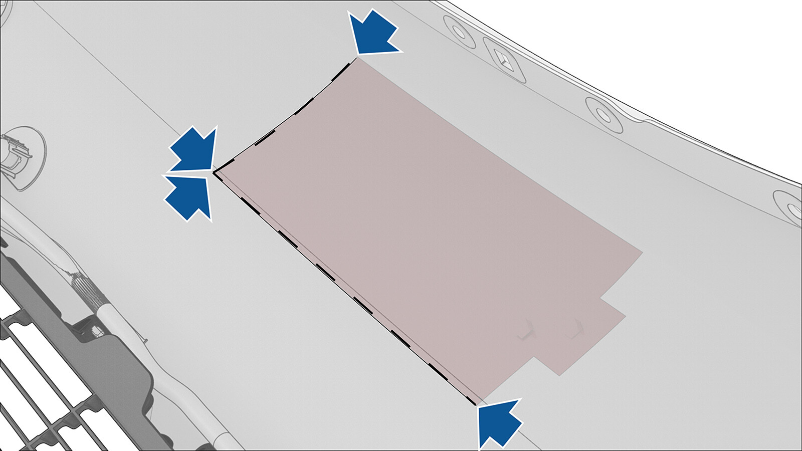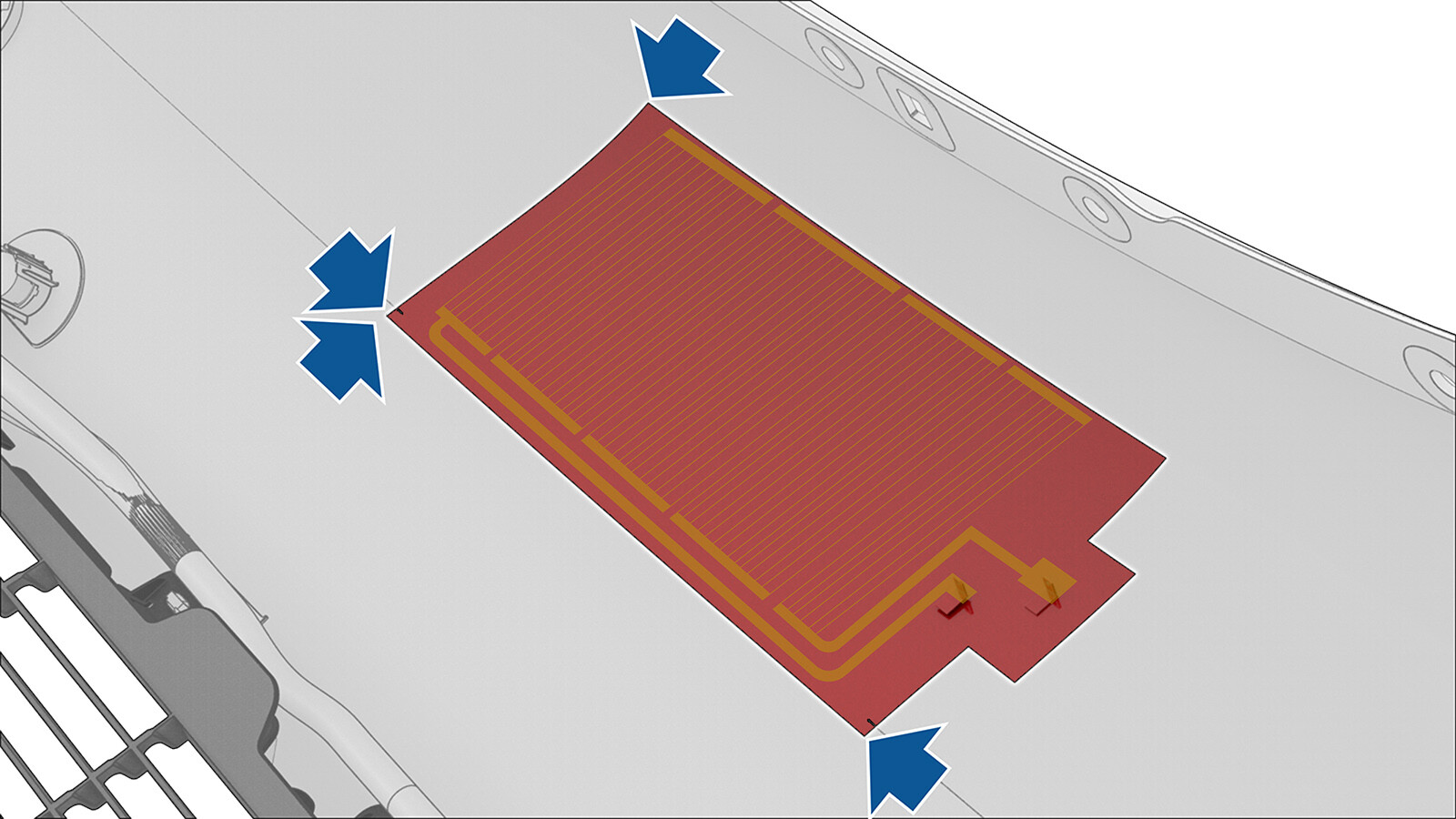 CAUTIONDo not leave any creases or bubbles when installing the radar heater and make sure the radar heater is aligned with the scribe lines. Failure may result in improper or reduced performance of the radar heater.