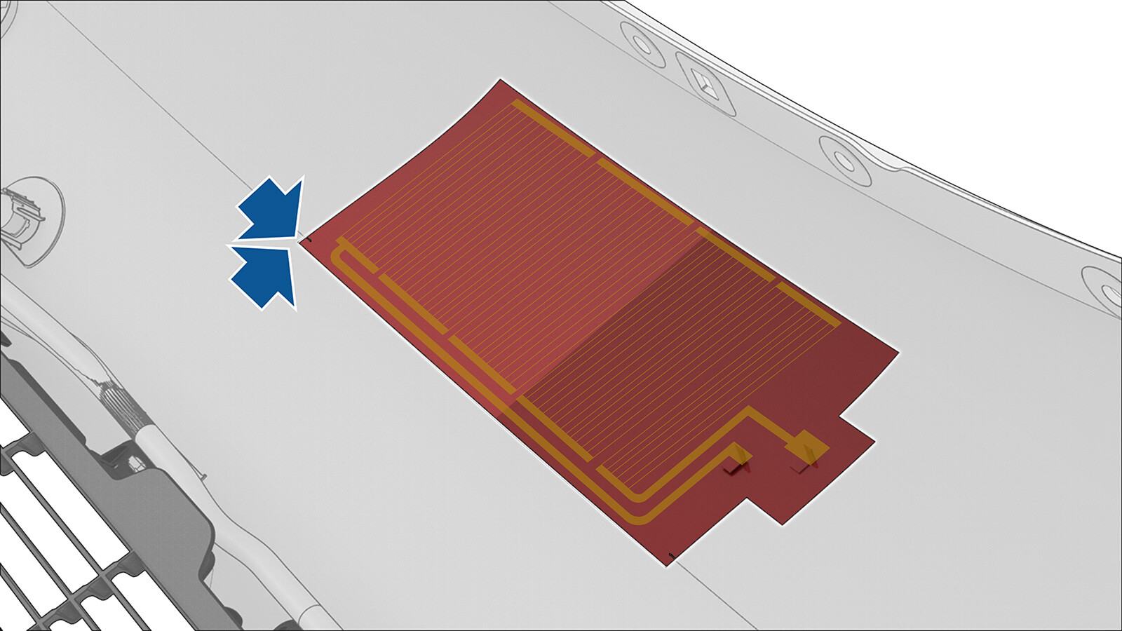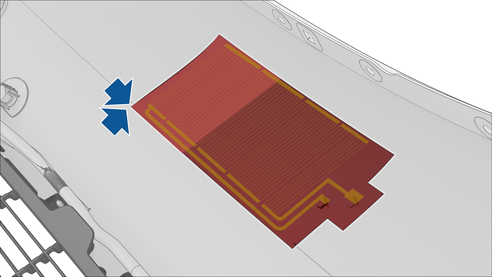 Inspect the radar heater for bubbles or creases. If any bubbles exist, confirm that they are less than 10 mm in diameter.