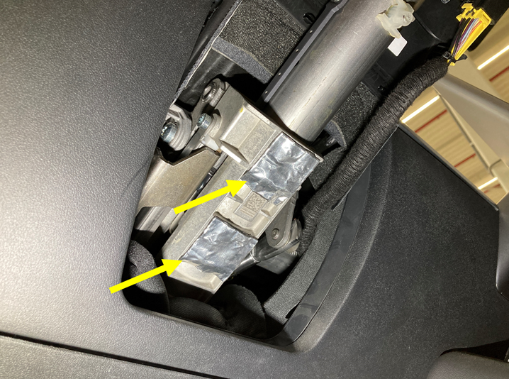 NoteMake sure that the butyl patches make contact with both the steering column and the grub screws. Thoroughly wet out the adhesive. If needed, use a pressure roller.