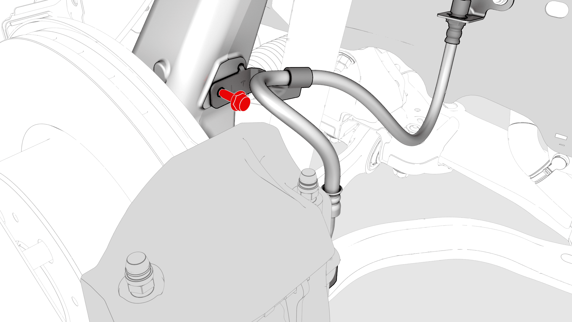 | Bolt that attaches the LH front brake hose bracket to the LH front knuckle |