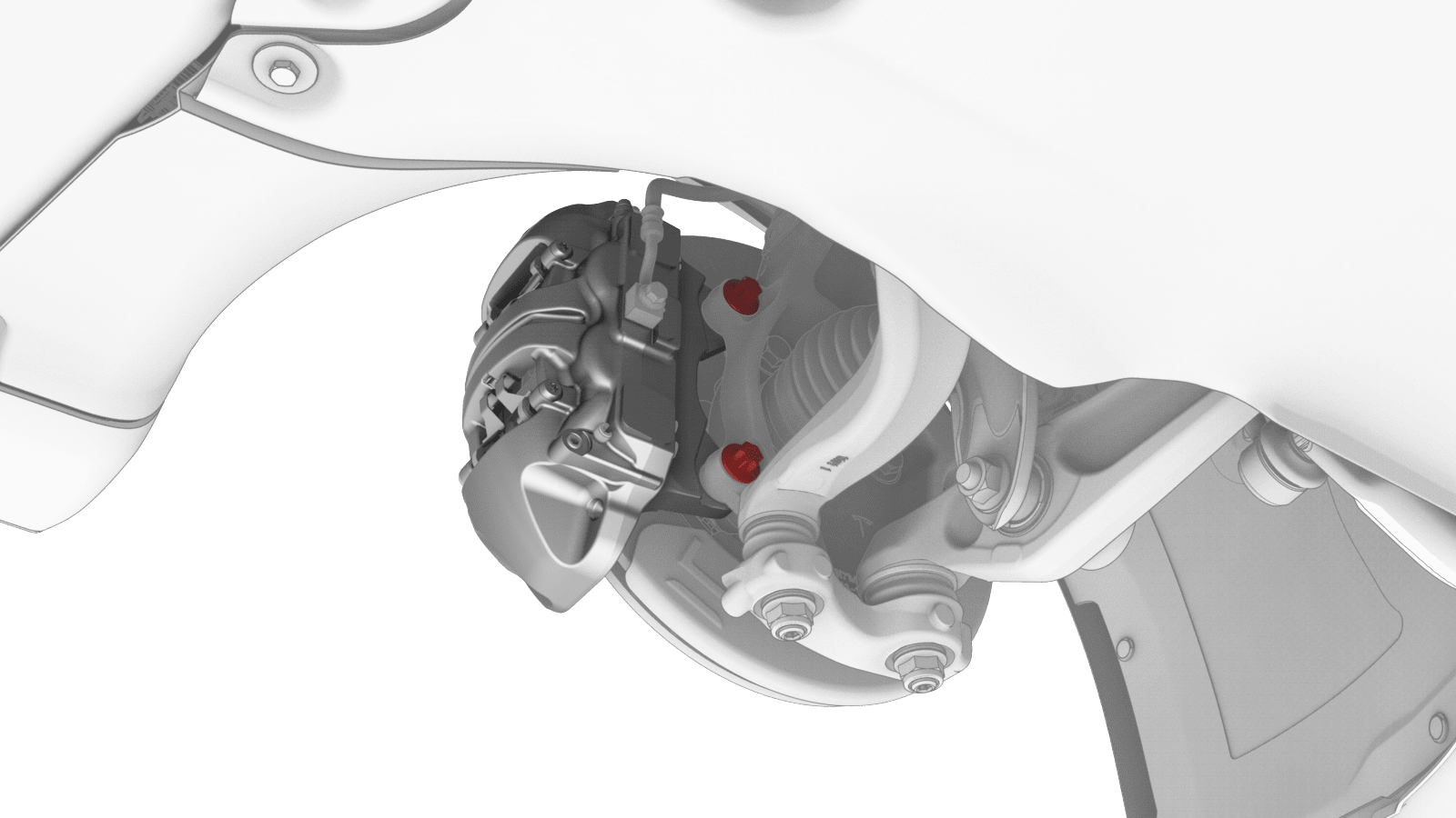 | Bolts that attach the LH front brake caliper to the LH front knuckle |