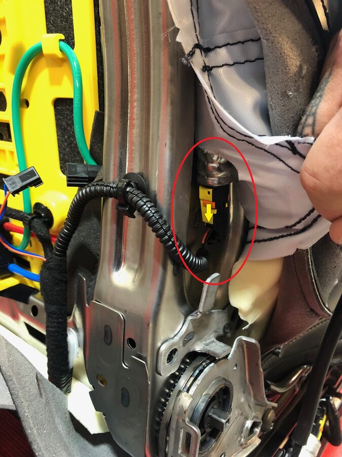 NoteInsert retractor into seat pre tensioner, Make sure it locks into position with push-pull-push test