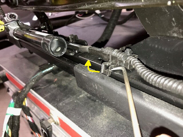 Install the harness retaining clip under the tilt motor