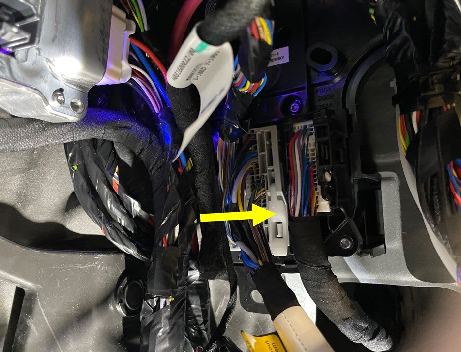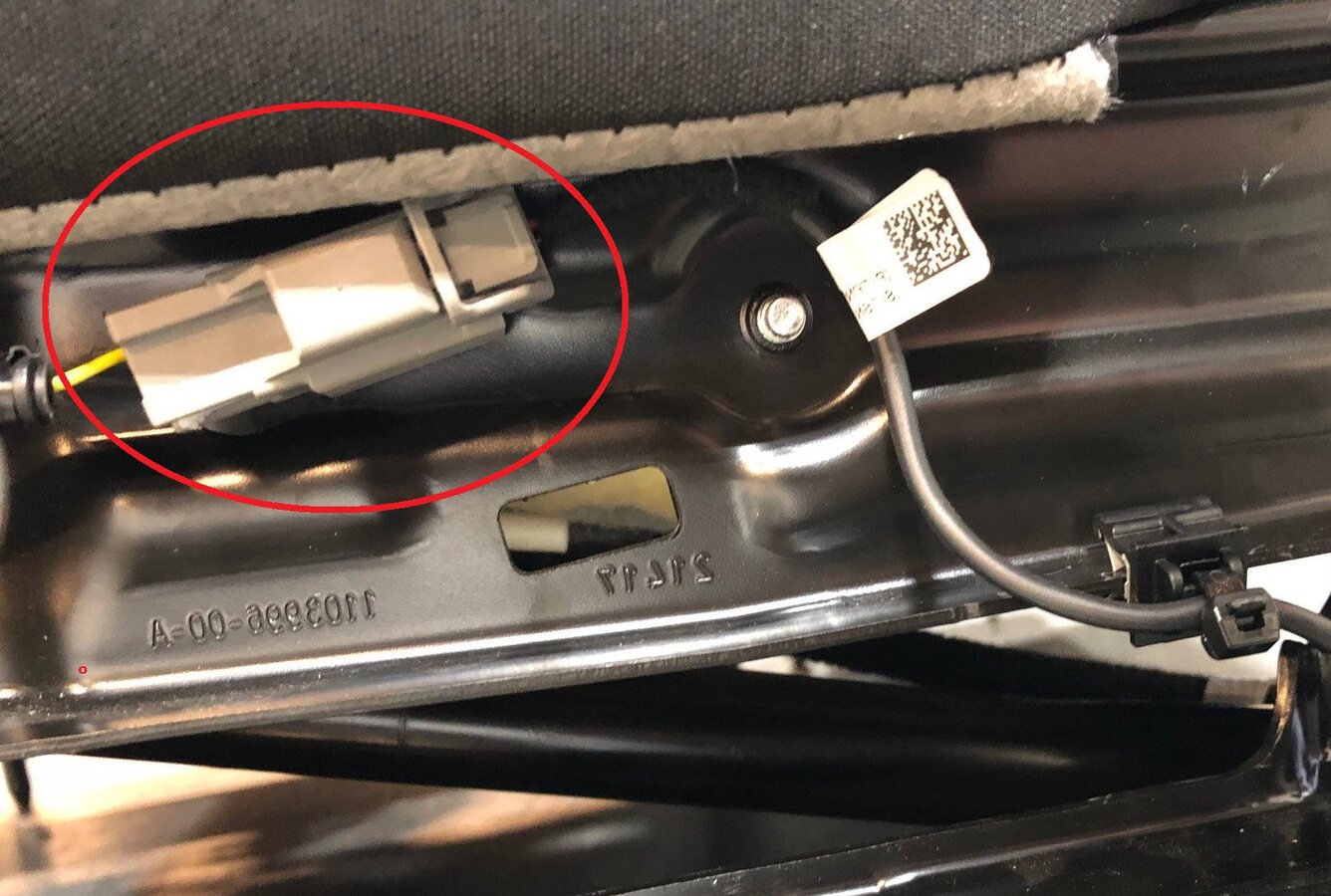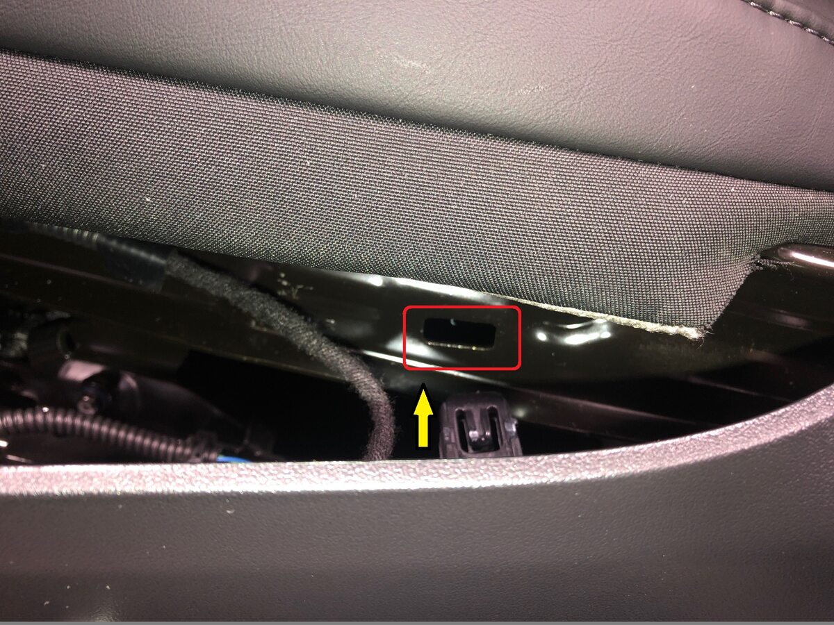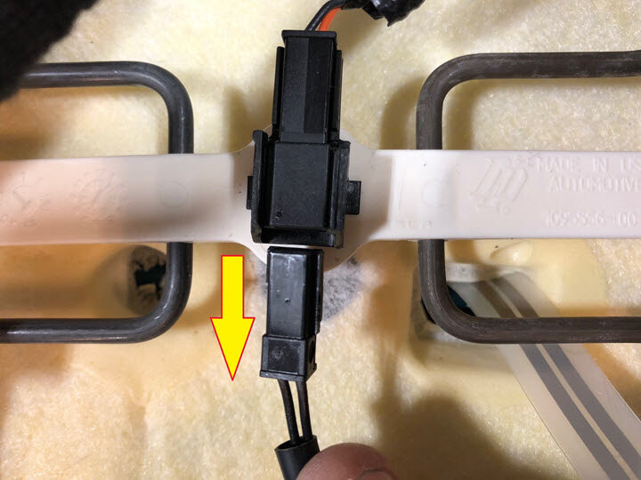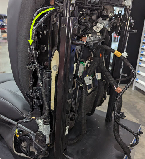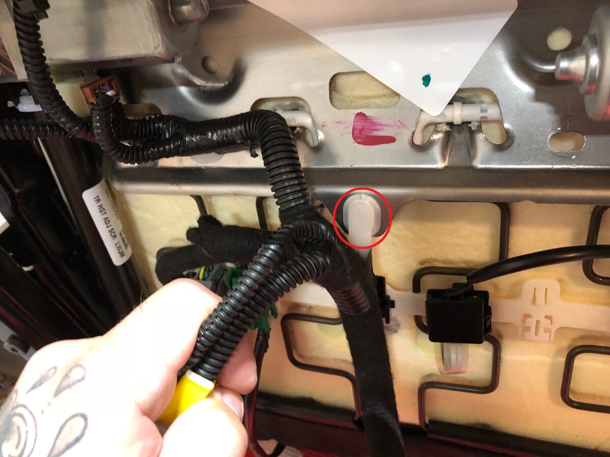 Install the clip securing the harness to the under side of the seat, next to the seat heater connectors