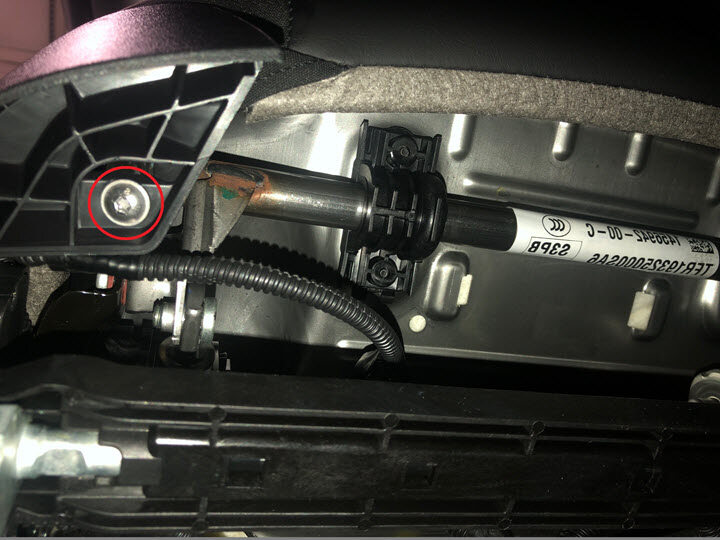 Note1x screw, T20, 4 Nm, Ensure the front of the seat is high enough to access the T20 screw