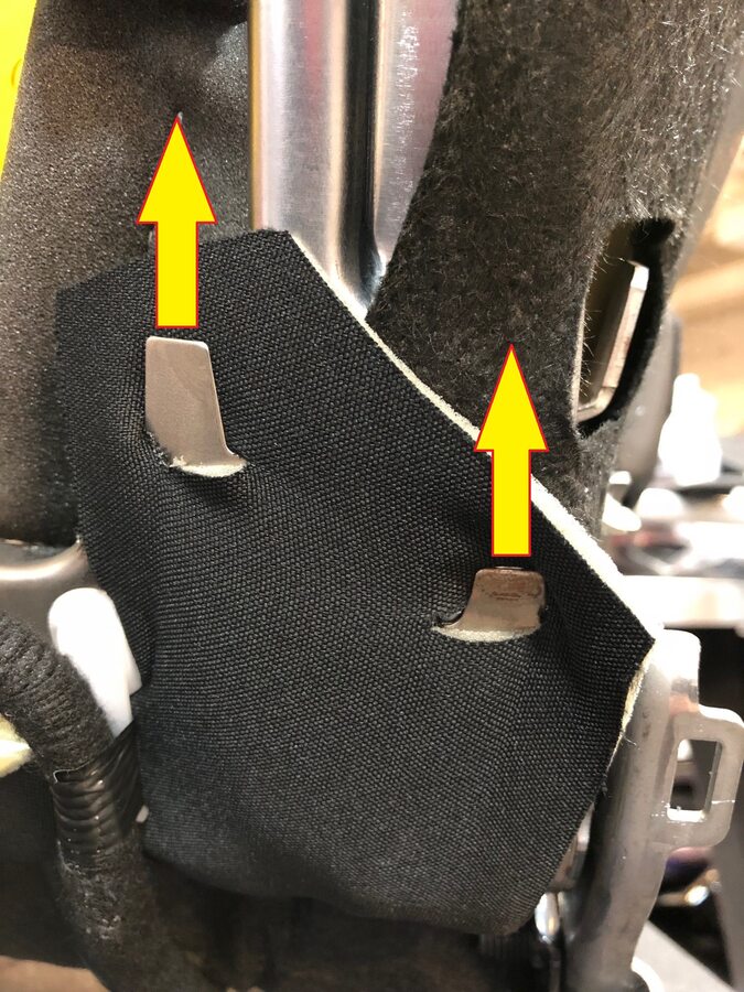Install the upper flap securing trim to RH side of seat frame tabs