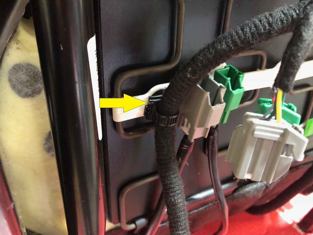Remove the harness retaining clip under the tilt motor
