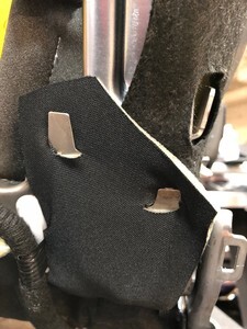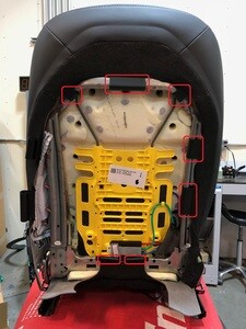Install the clips (x3) that attach the seat harness to the seat back frame.