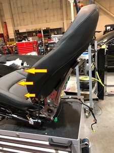 NoteMake sure the heater harness and the seat back trim is clear of the seat back frame.