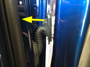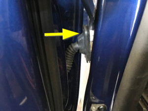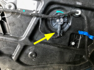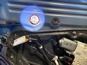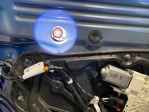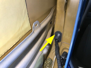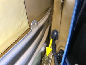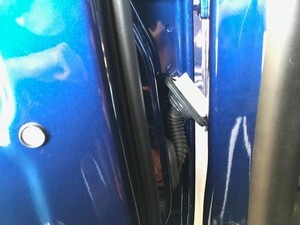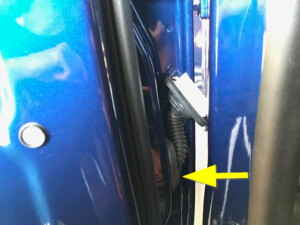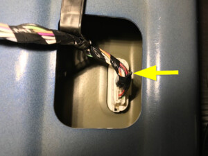 Note1x grommet, Pull grommet through LH rear door assembly from within door