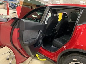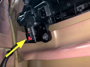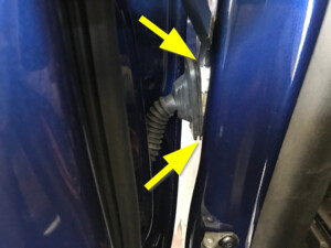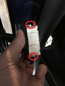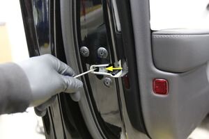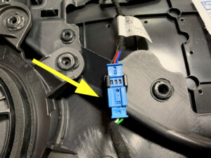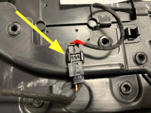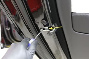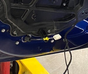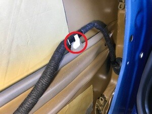 Note1x connector, 2x clips, 1x grommet, Pry at both the top and then the bottom of rear door harness grommet while pulling away from B-pillar to release door harness