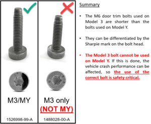 Note2x bolts, T30, 6 Nm, Do not use M3 door fasteners which are shorter in length