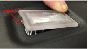 Note1x connector, Make sure the white task light C notch is pointing toward front edge of door trim