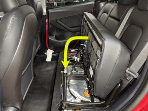 NoteLift front edge of seat cushion upward to release foam from frame, Pull towards front of vehicle then tilt bench against 40/60 back