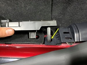 Note1x push clip, Clip secures lower B-pillar and rear cabin carpet to body