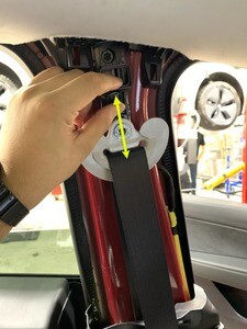 Note1x clip, 1x tab, Release the upper clip then pull mid A-pillar upward to remove