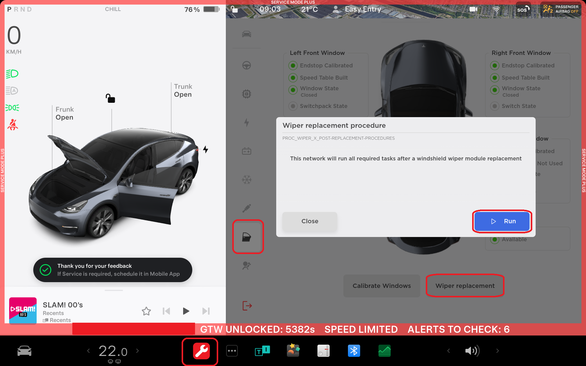 - Enable Service Mode through the touchscreen. See Service Mode.